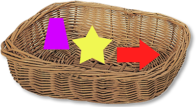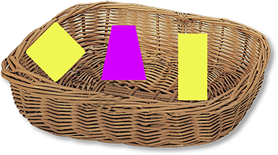 הילדים צריכים למצוא את הקריטריון על פיו הוכנסו הצורות לסל ולהכניס לסל צורות נוספות התואמות לאותו