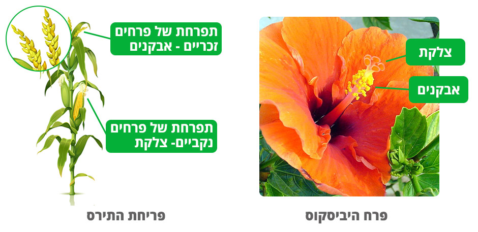 פרחי התירס הם חד מיניים- לחלקם איברים נקביים (עלי) וחלק אחר איברים זכריים